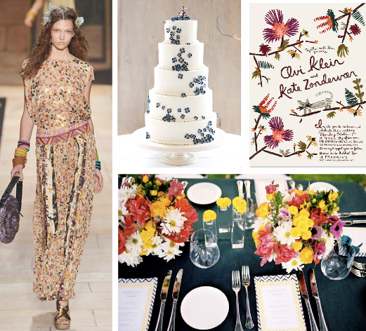 I think Harriet was subconsciously chanelling elements of her dress into the headdress and I was vaguely thinking of Marni's S/S 12 collection with its plastel (yes, I have fused pastel and plastic into one) florals.