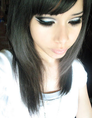 اهني قاعد تقلد لوك ليدي غاغا بغنيتها باد رومانس ومبالغه بالكحل الابيض بس بوريكم الفكره شلون الابيض يوسع حييييييييييييييييل وعلى فكره ترا اهي حاطه ٣ رموش فوق بعض