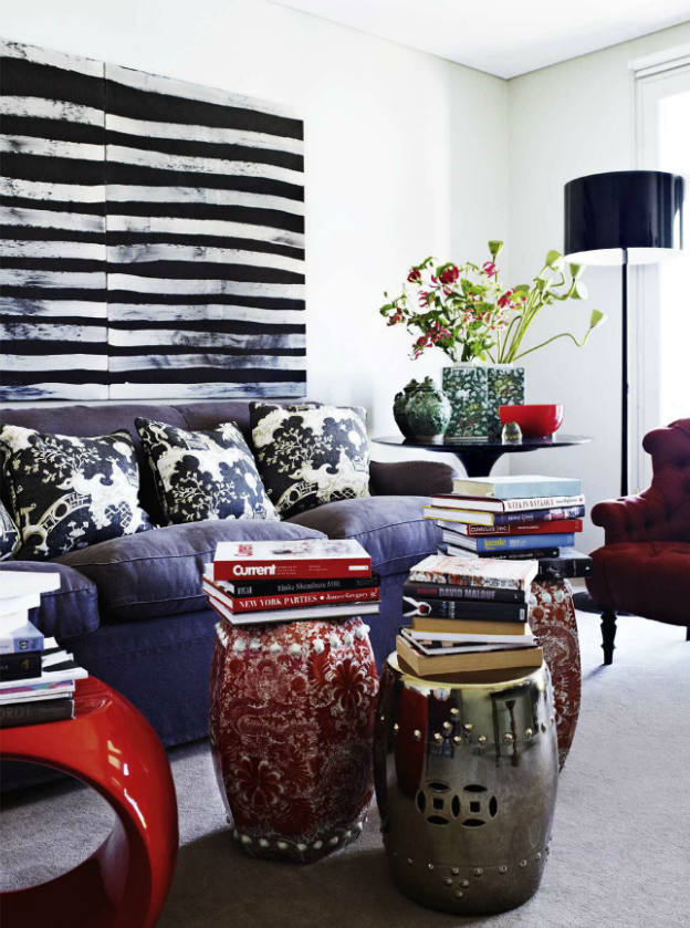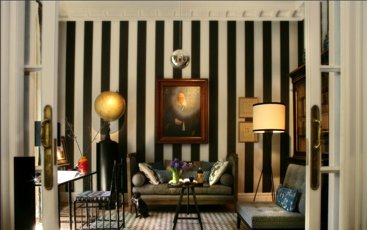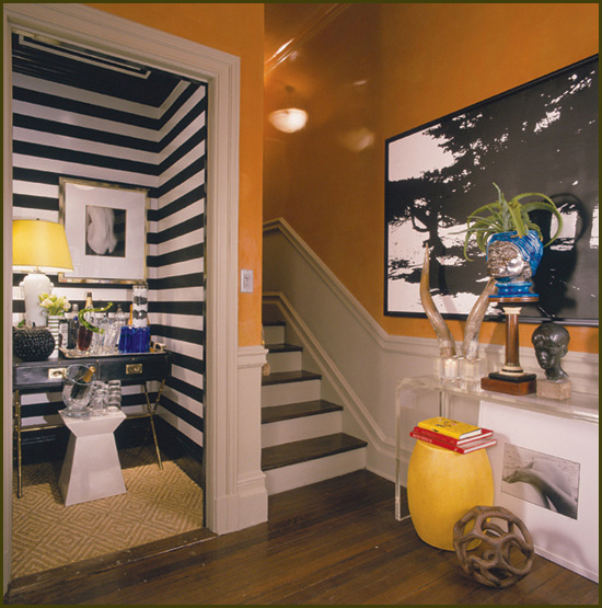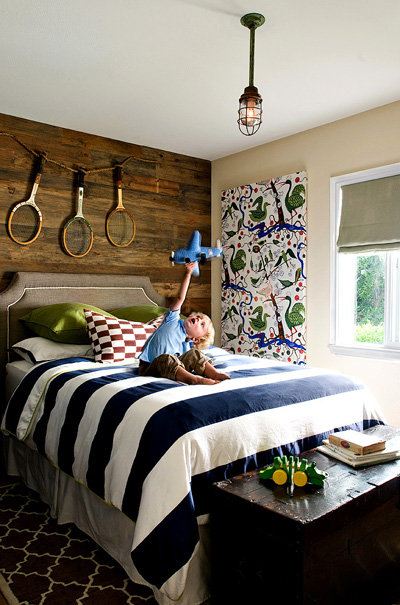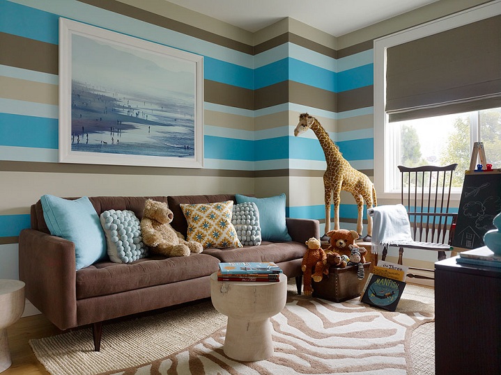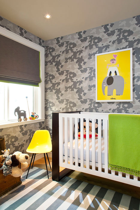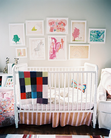 And finally the very innovative nursery of Jenna Lyons's baby boy. This is the room responsible for setting off a rage for striped nursery ceilings.