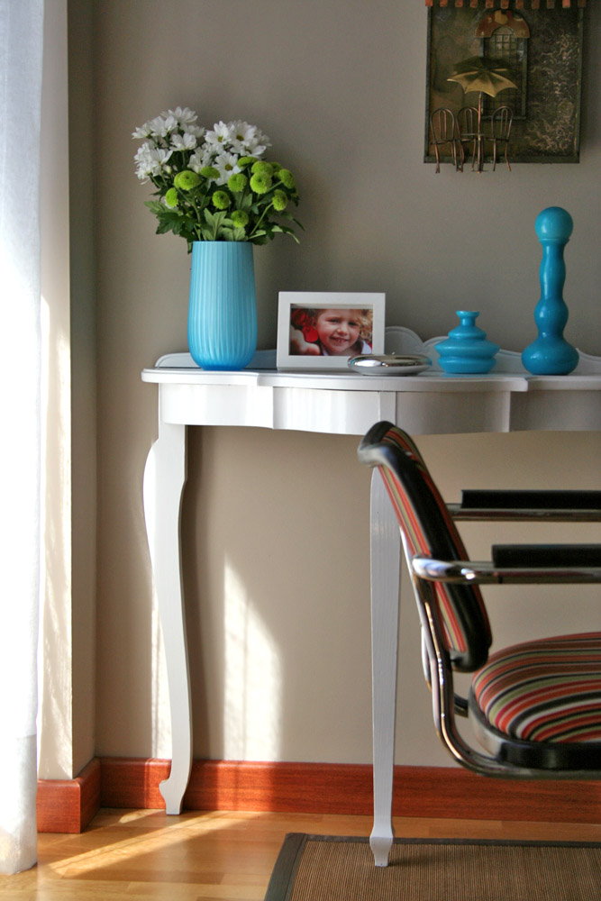 This house in Barcelona belongs to a young couple and I'm so in love with how aged it looks yet somehow still feels young and fresh! The antique furniture throughout the home is well balanced by the brightly lit space and the kitchen is small but the color of painted cabinets put me in a good mood!